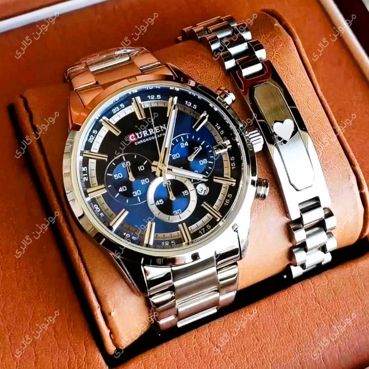 ساعت مچی مردانه کارن (کورن واتچ Curren) کد 8355 کرنوگراف، از جنس استنلس استیل 316، ساعتی عالی برای تجار و بازرگانان است. از فولاد ضد زنگ با کیفیت بالا برای ساخت این ساعت مچی ممتاز استفاده شده است، کرنومترهای کامل، بند استیل صیقل خورده و صفحه تراش خورده، تنها چند نمونه از قسمتهای با کیفیت این ساعت هستند. نشانگرهای درخشان (عقربه های شب نما) و روزشمار (تاریخ) خودکار، قطعاً از امکانات مفید این ساعت است، این ساعت مردانه با این قیمت کاملاً خیره کننده است. با این ساعت به سبک و سیاق تجار و بازرگانان قدم بزنید، حرف های ما را قبول کنید و این ساعت را بخرید، مطمئن باشید پشیمان نخواهید شد.
