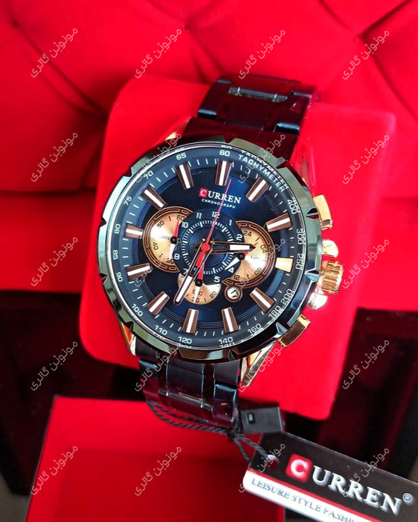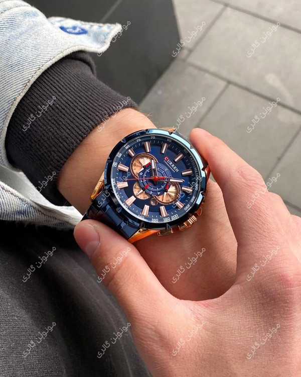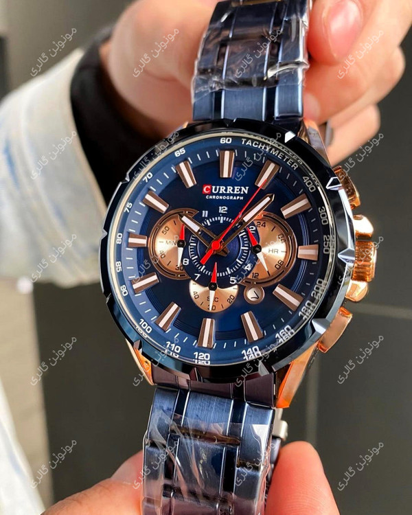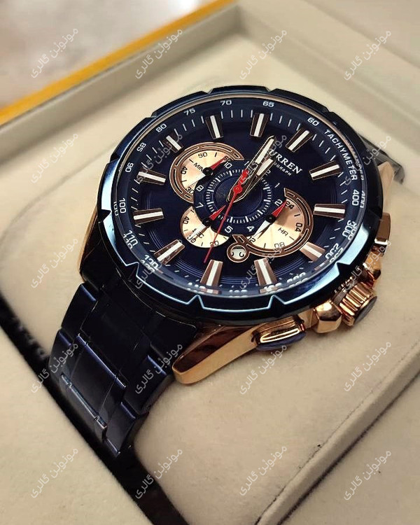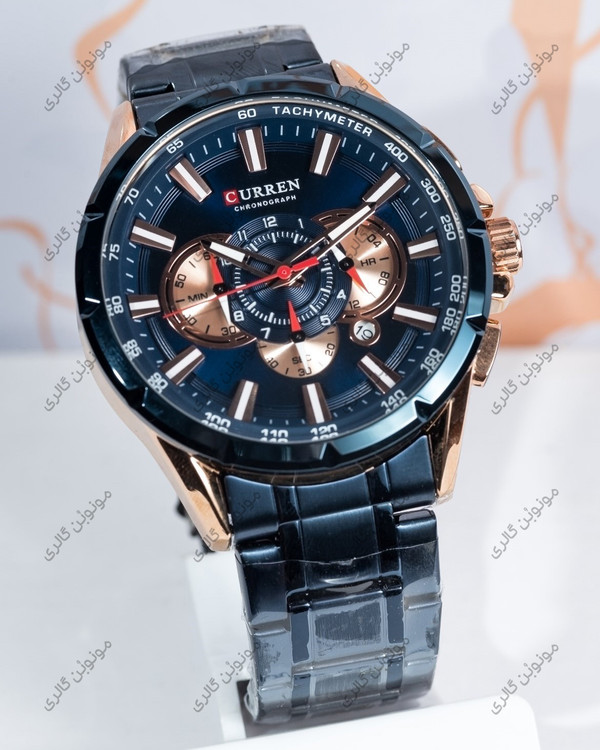 ساعت مچی مردانه کارن 8363 آبی-رزگلد (کورن CURREN) سه موتور فعال