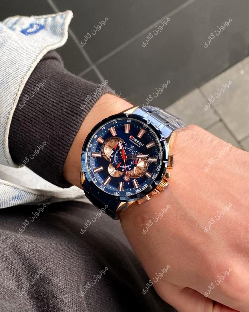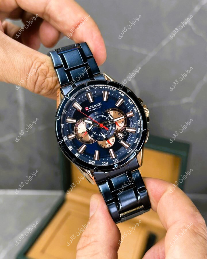 ساعت مچی مردانه کارن 8363 آبی-رزگلد (کورن CURREN) سه موتور فعال
