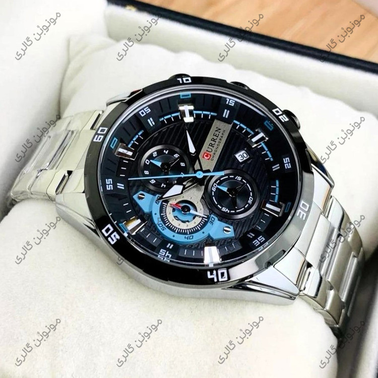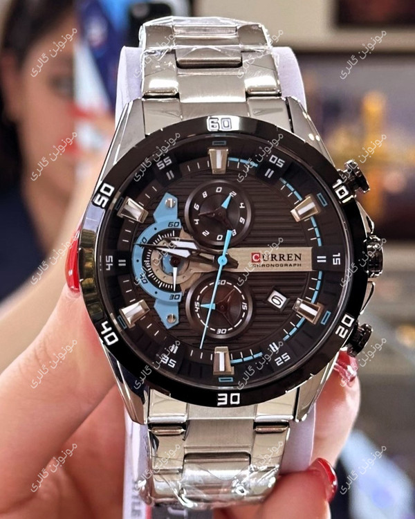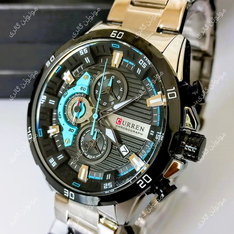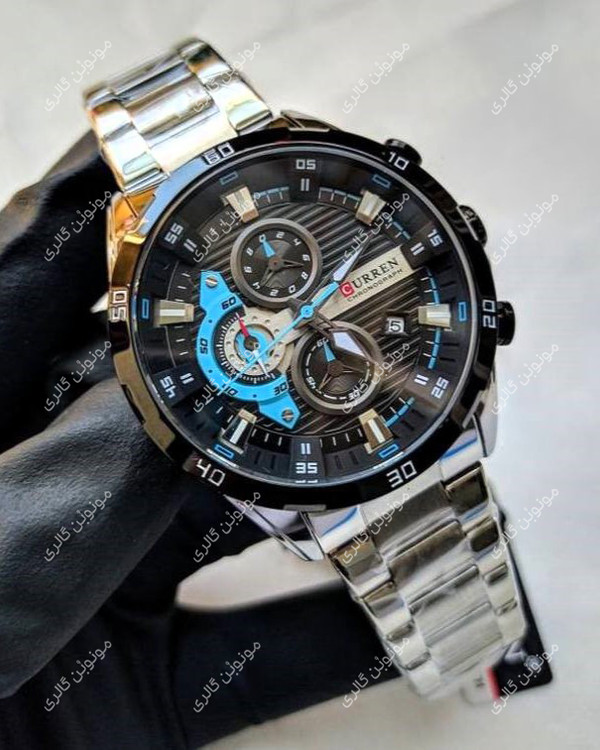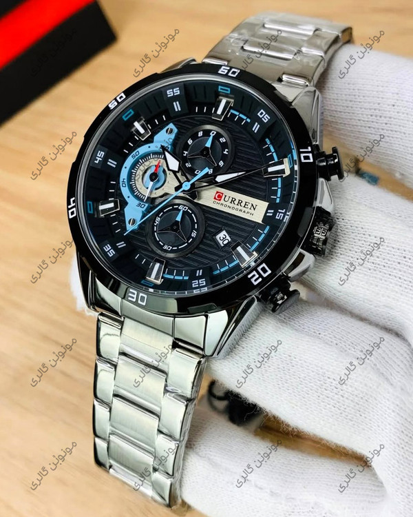 ساعت مچی مردانه کارن 8402 نقره ای-مشکی (کورن CURREN) سه موتور فعال