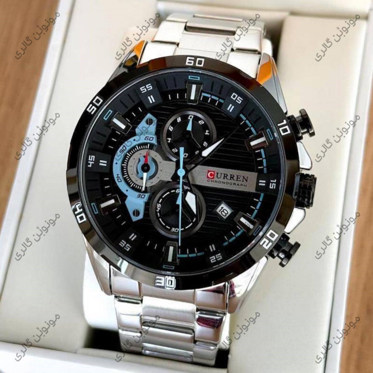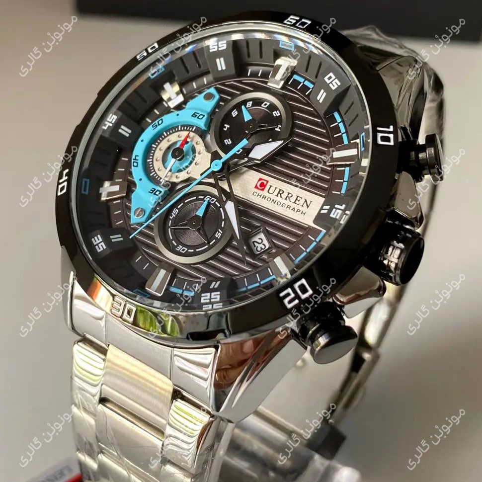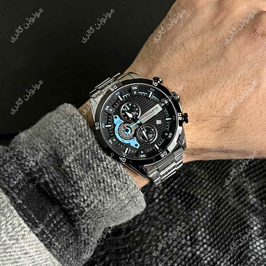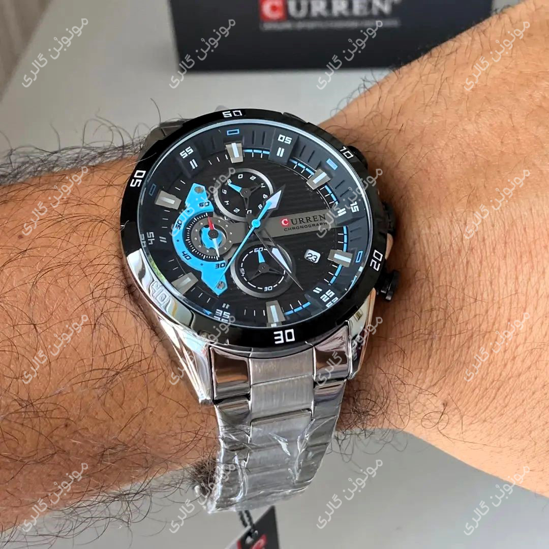 ساعت مچی مردانه کارن 8402 نقره ای-مشکی (کورن CURREN) سه موتور فعال