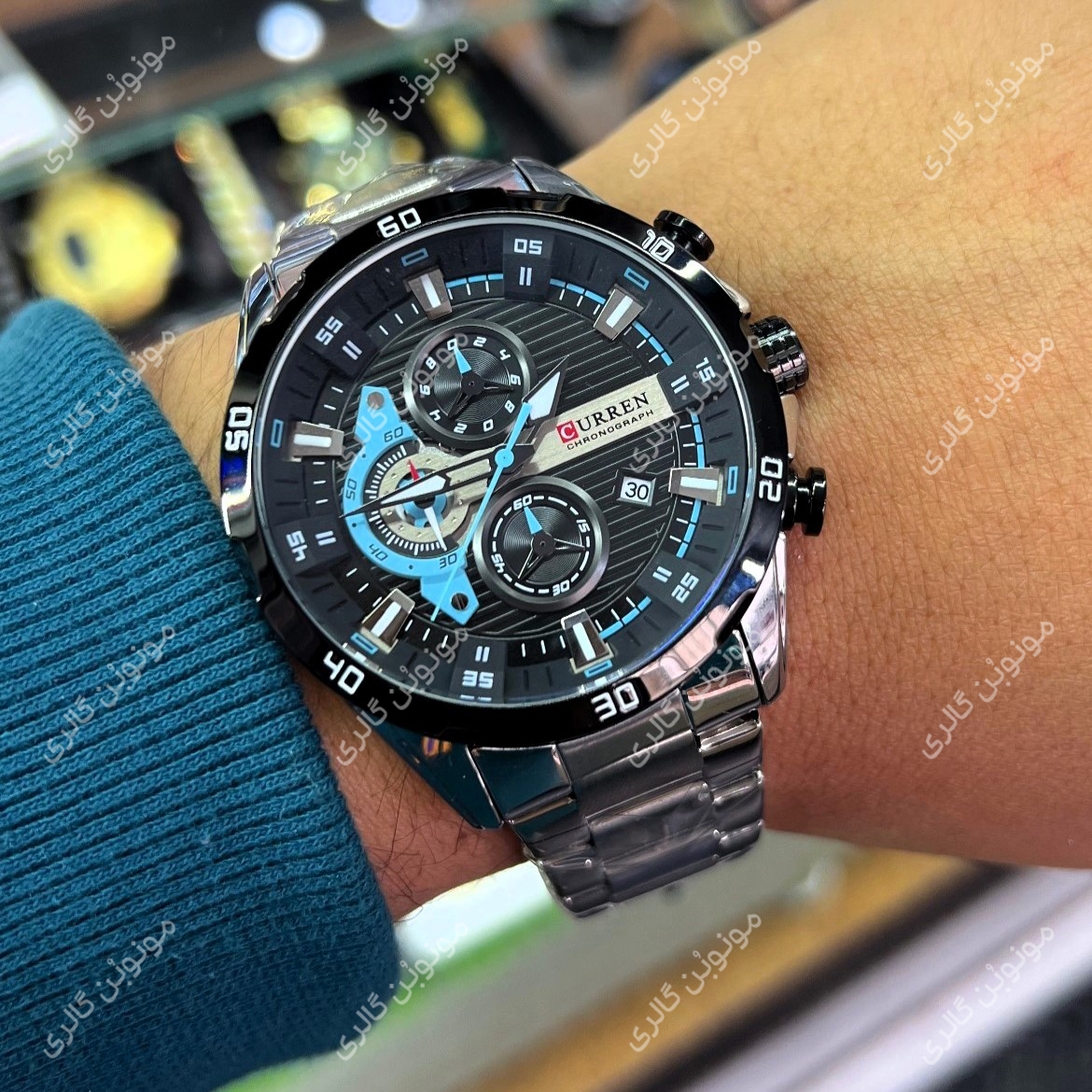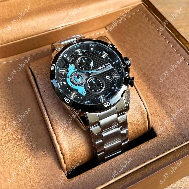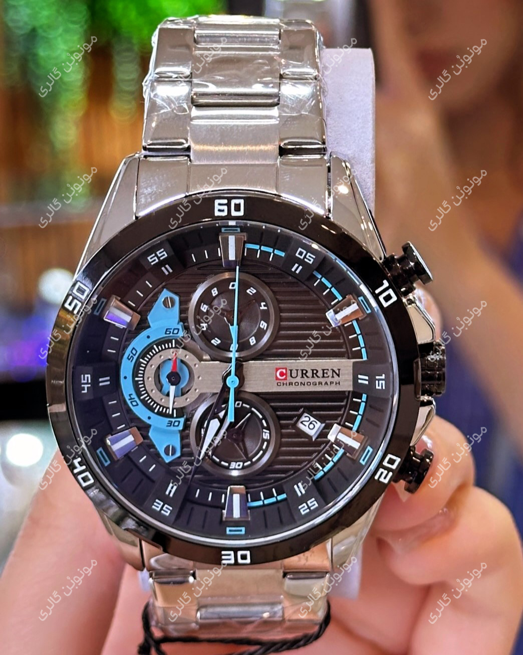 ساعت مچی مردانه کارن 8402 نقره ای-مشکی (کورن CURREN) سه موتور فعال