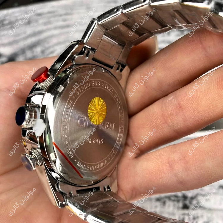 صفحه ساعت کارن 8415 نقرهای با رنگ یکدست فلزی و طراحی مینیمال، جلوهای کلاسیک و رسمی دارد. فرم صفحه گرد، عقربههای دقیق و نمایشگرهای فرعی فعال، این مدل را به انتخابی مناسب برای جلسات کاری، مهمانیها و استفاده روزمره تبدیل کرده است.