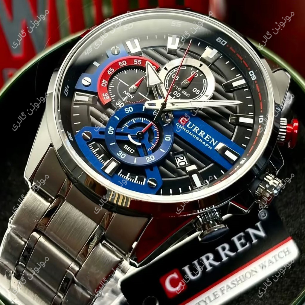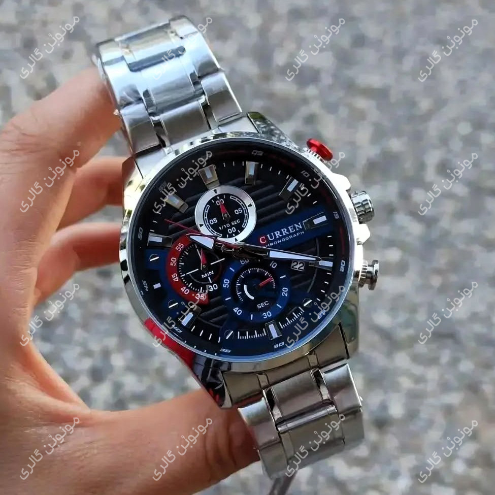 ساعت مچی مردانه کارن 8415 نقره ای (کورن CURREN) سه موتور فعال