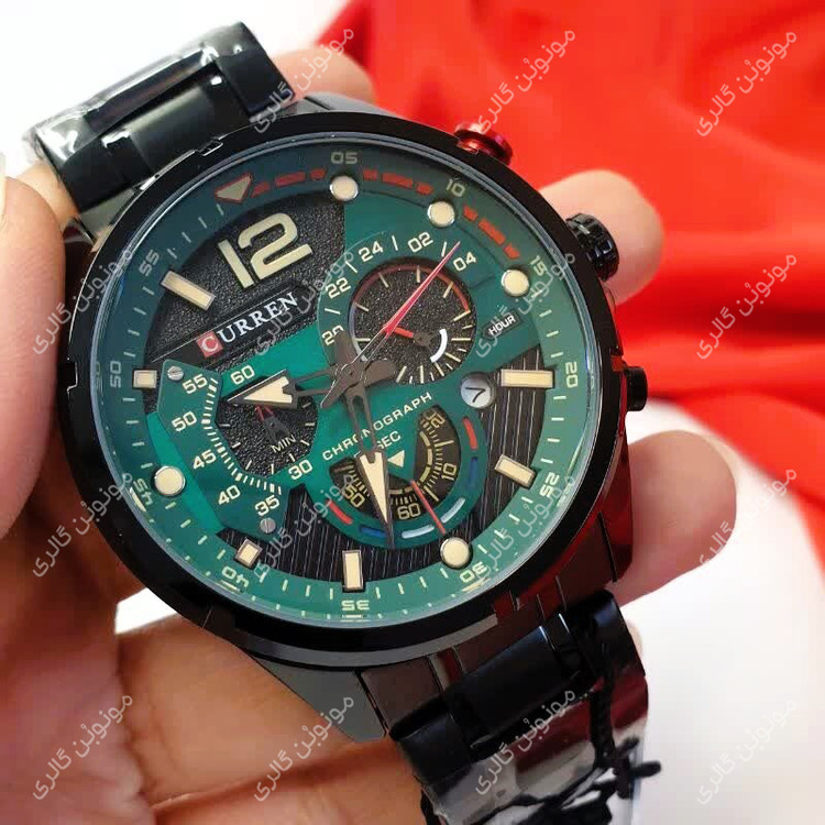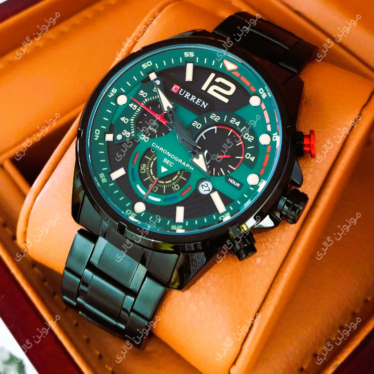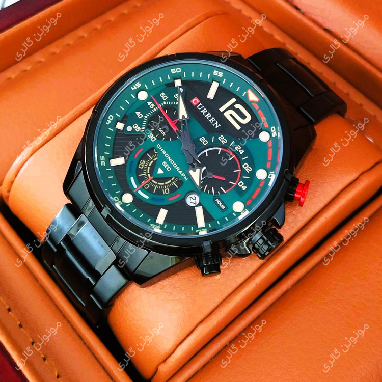 ساعت مچی مردانه کارن 8395 مشکی-سبز (کورن CURREN) سه موتور فعال، ترکیبی از طراحی جسورانه، عملکرد دقیق و کیفیت ساخت بینظیر است. این مدل با بند استیل ضد حساسیت، قاب آلیاژ ضد زنگ و سه موتور فعال، انتخابی ممتاز برای آقایانیست که به دنبال ساعت مچی خاص، مقاوم و شیک هستند.