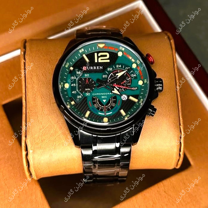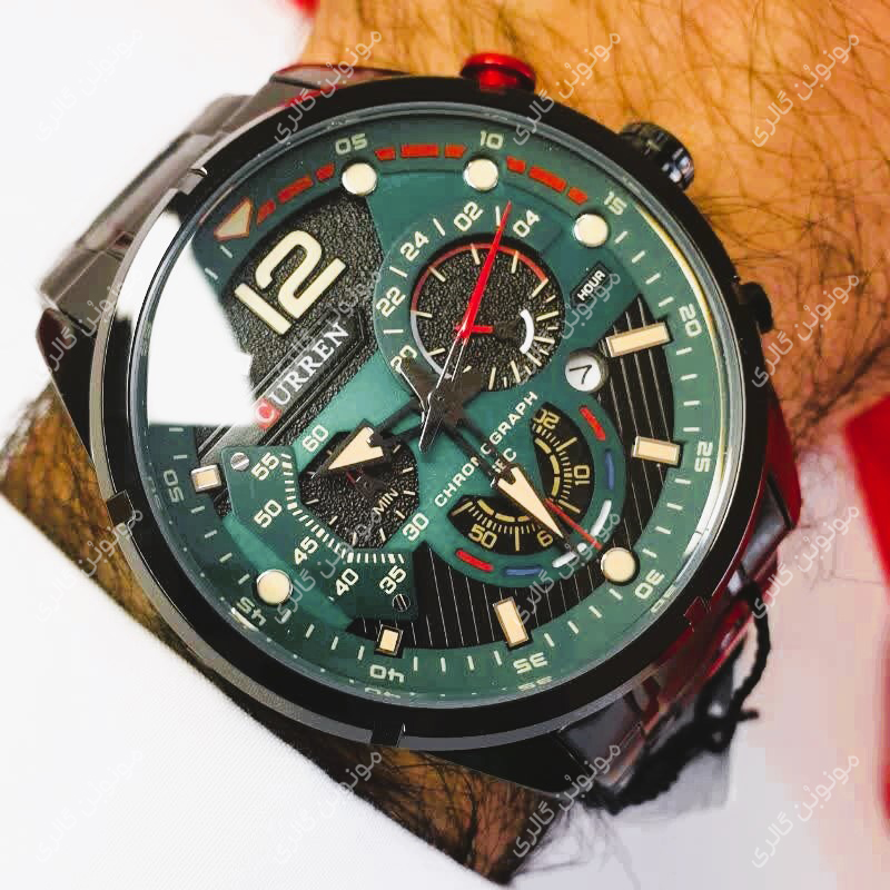 ساعت مچی مردانه کارن 8395 مشکی-سبز (کورن CURREN) سه موتور فعال، ترکیبی از طراحی جسورانه، عملکرد دقیق و کیفیت ساخت بینظیر است. این مدل با بند استیل ضد حساسیت، قاب آلیاژ ضد زنگ و سه موتور فعال، انتخابی ممتاز برای آقایانیست که به دنبال ساعت مچی خاص، مقاوم و شیک هستند.