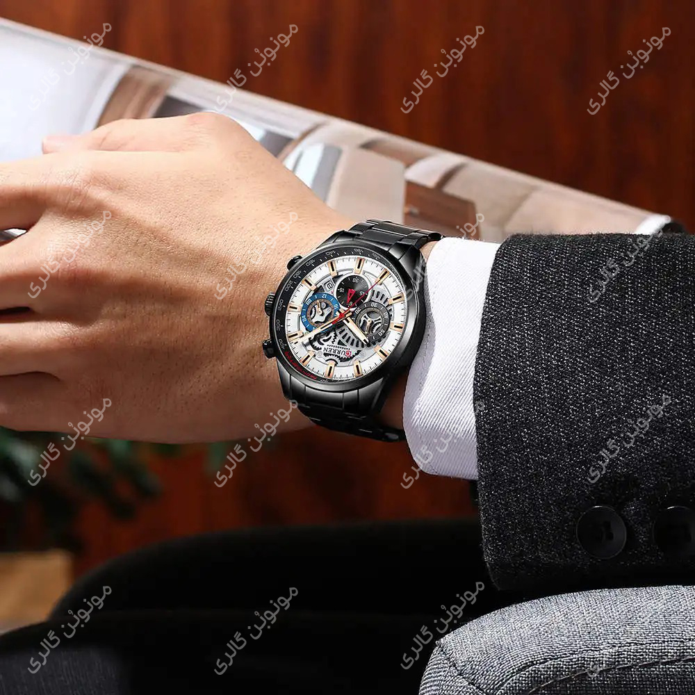 ساعت مچی مردانه کارن 8391 مشکی-سفید CURREN سه موتور فعال