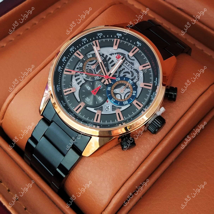 ساعت مچی مردانه کارن 8391 مشکی-رزگلد CURREN سه موتور فعال