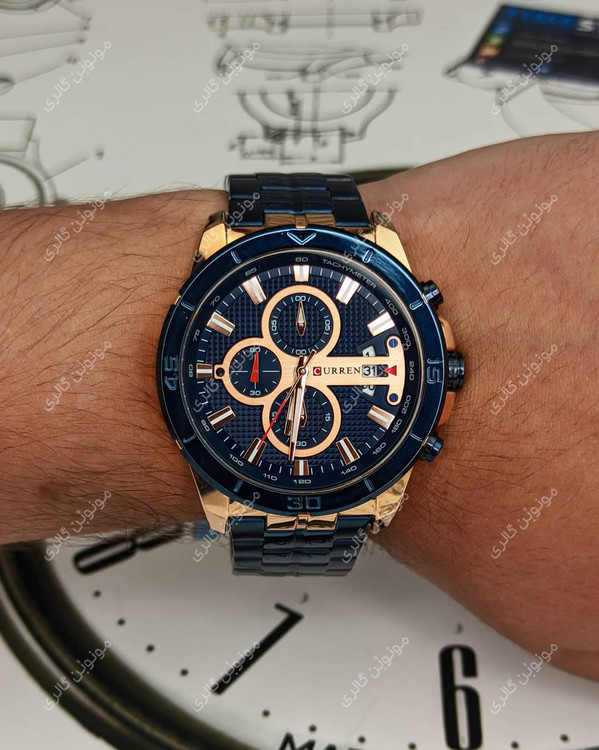 ویدیوی ساعت مچی مردانه کارن 8337 آبی-رزگلد CURREN سه موتور فعال را مشاهده کنید!