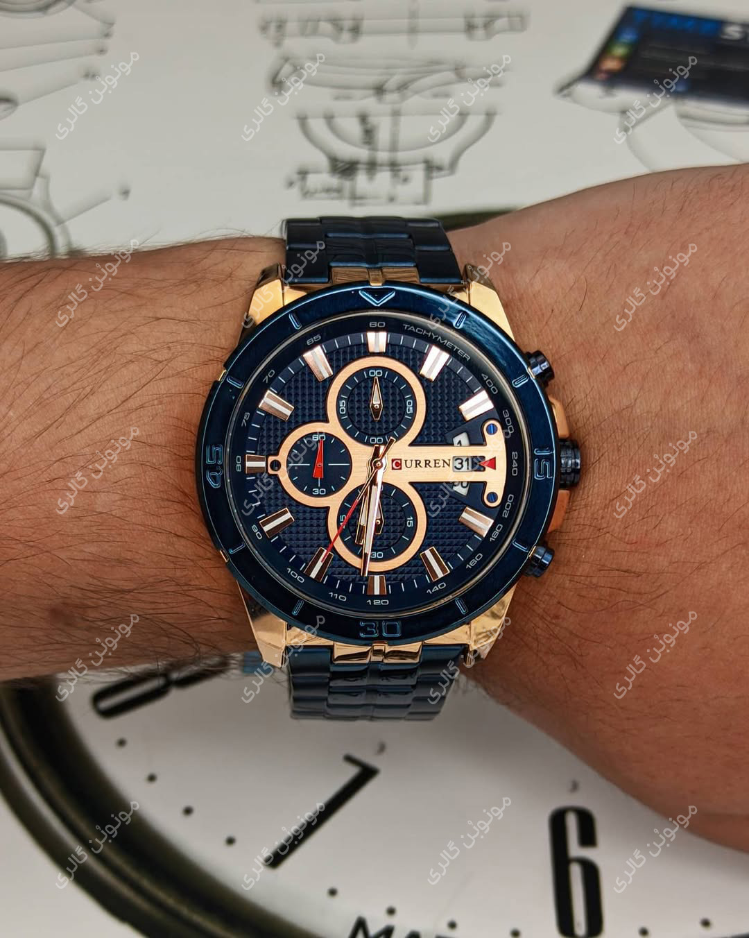 ویدیوی ساعت مچی مردانه کارن 8337 آبی-رزگلد CURREN سه موتور فعال را مشاهده کنید!
