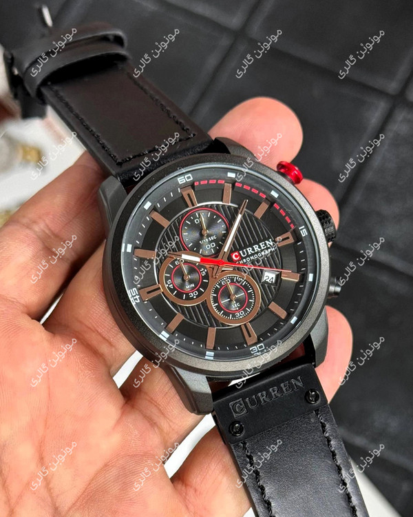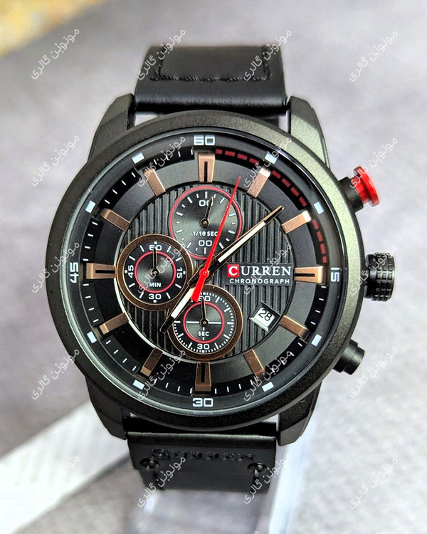 - طراحی مینیمال ساعت مردانه CURREN سه موتوره با رنگ مشکی یکدست