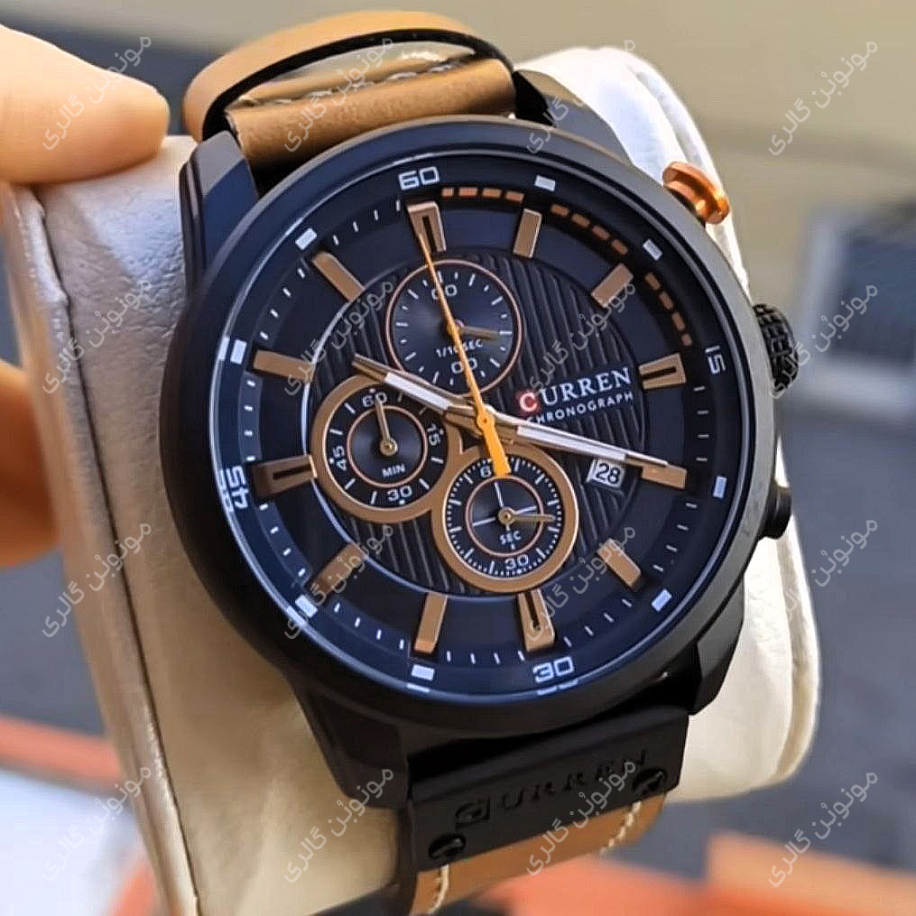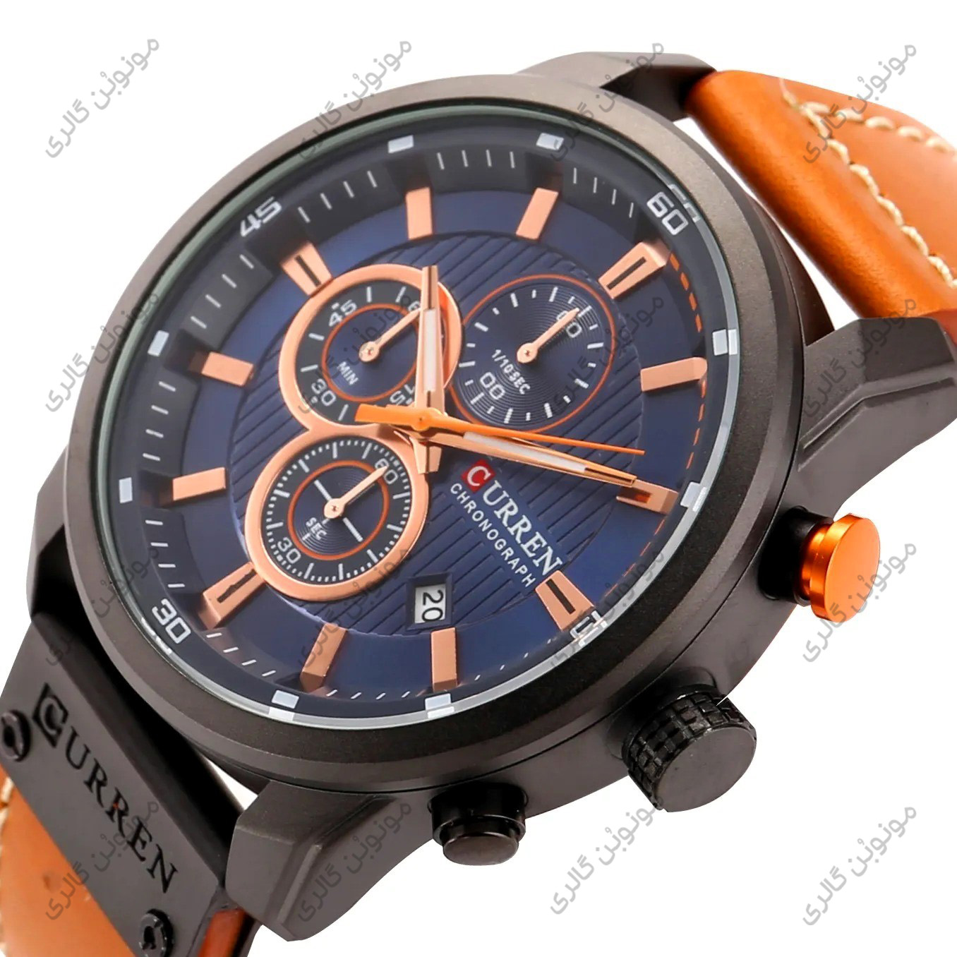 ساعت مچی مردانه کارن 8291 عسلی-مشکی-سرمه ای CURREN سه موتور فعال