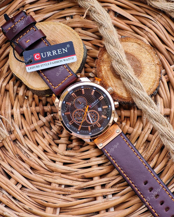 ساعت مچی مردانه کارن 8291 قهوه ای-رزگلد-قهوه ای CURREN سه موتور فعال