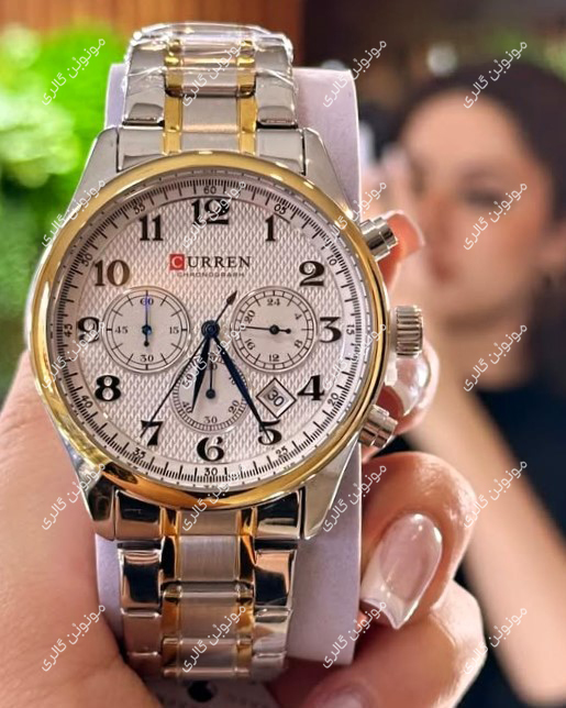 ساعت سه موتوره مردانه فول تایم کارن 8466 (کورن CURREN) نقره ای-طلایی-سفید