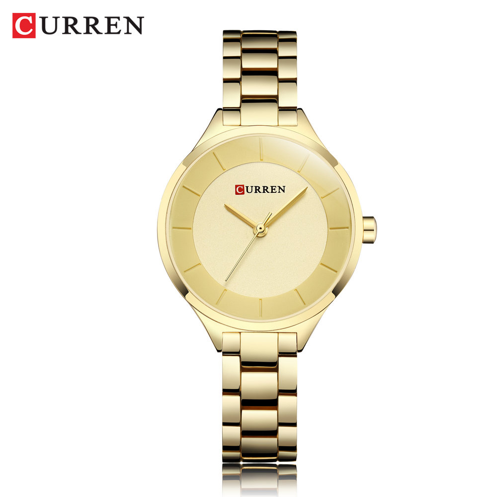 ساعت زنانه شیک مجلسی بند استیل کارن 9015 (کورن CURREN) طلایی