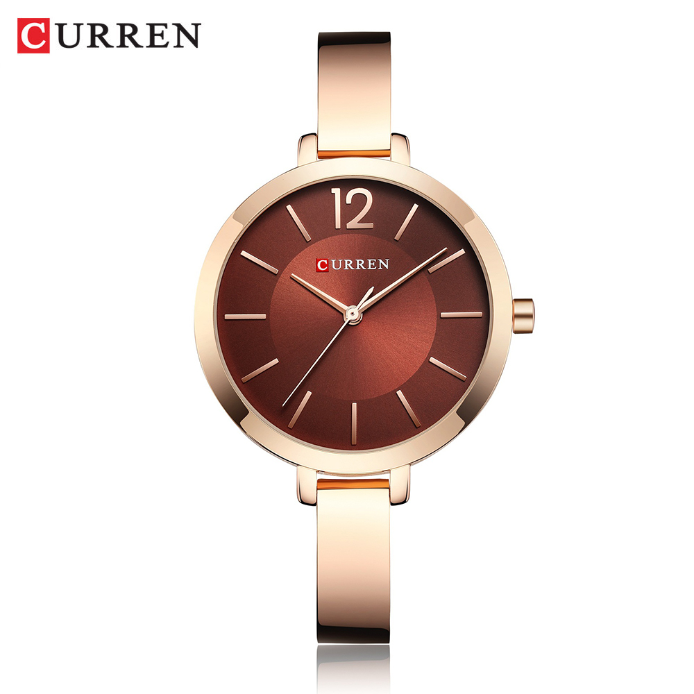 ساعت زنانه ضد آب بند استیل برند کارن 9012 (کورن CURREN) رزگلد-قهوه ای