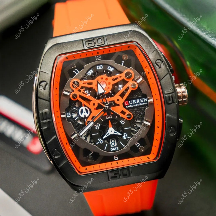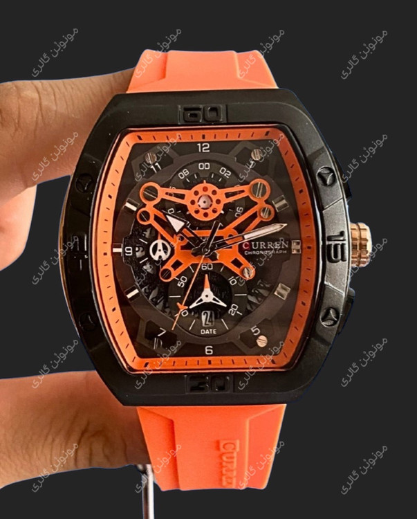 ساعت مچی مردانه سیلیکونی اسپرت کارن 8443 نارنجی (کورن CURREN) سه موتور فعال
