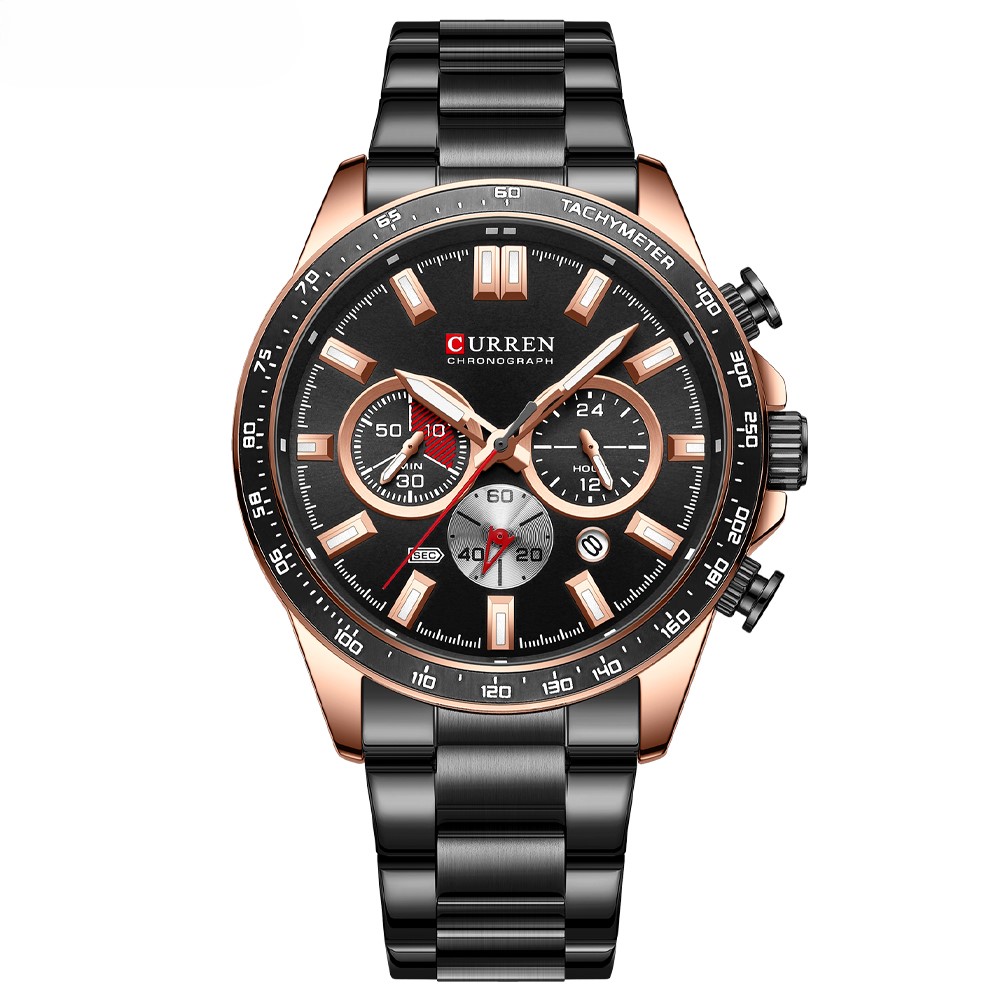 ساعت مچی مردانه سه موتوره فول تایم کارن 8418 مشکی-رزگلد؛ تلفیقی از ظرافت، عملکرد و جذابیت بصری