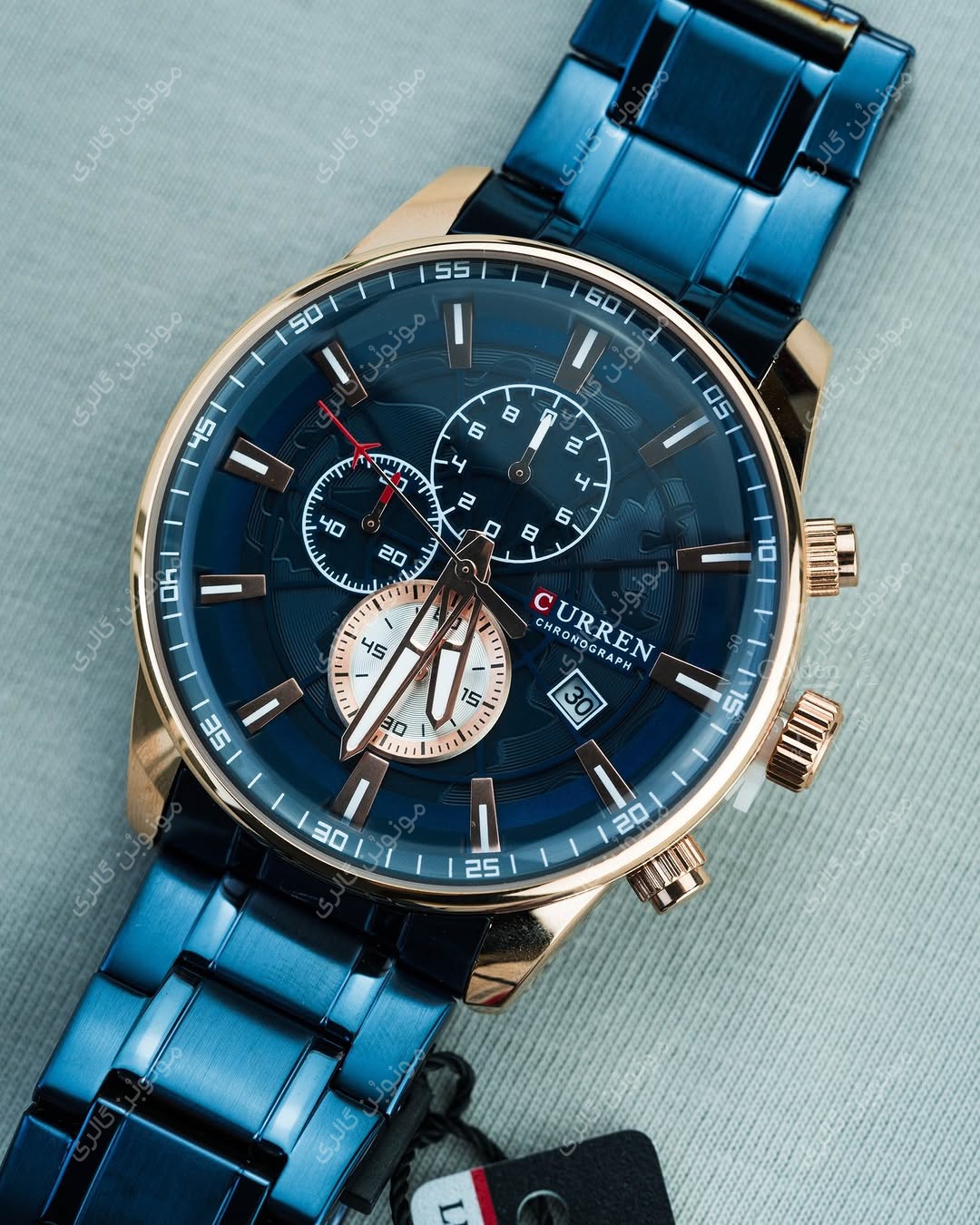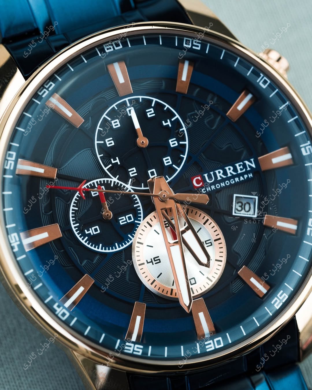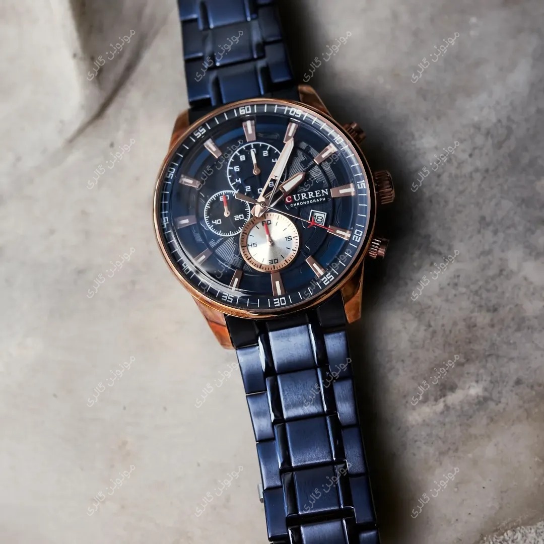ساعت سه موتوره اورجینال مردانه کارن 8362 سرمه ای-رزگلد (کورن CURREN)