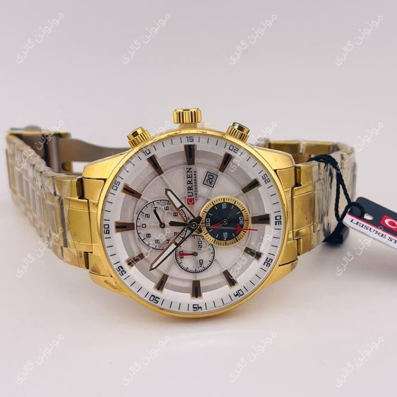 ساعت سه موتوره اورجینال مردانه کارن 8362 طلایی-سفید (کورن CURREN)